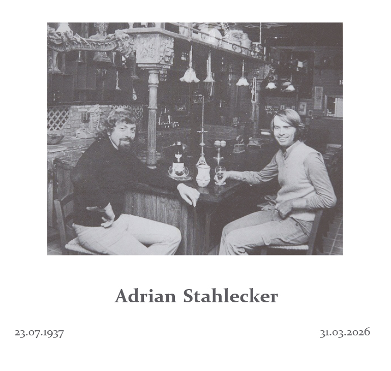 Na een lang en kunstzinnig leven is Adrian Stahlecker op 31 maart 2026 vredig ingeslapen. We koesteren de vele verhalen en bijzondere ontmoetingen die zijn leven zo rijk maakten.