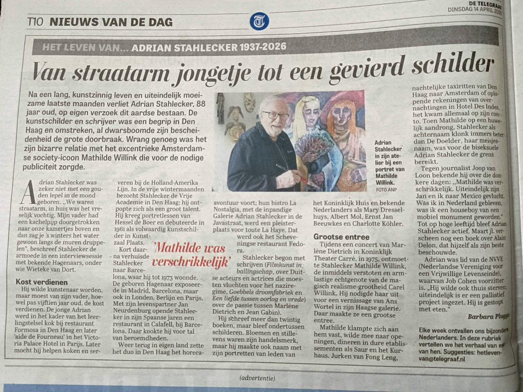 In Memoriam Een overzicht van publicaties die zijn verschenen na het overlijden van Adrian Stahlecker. Telegraaf “Het leven van… Adrian Stahlecker” 14 april 2026